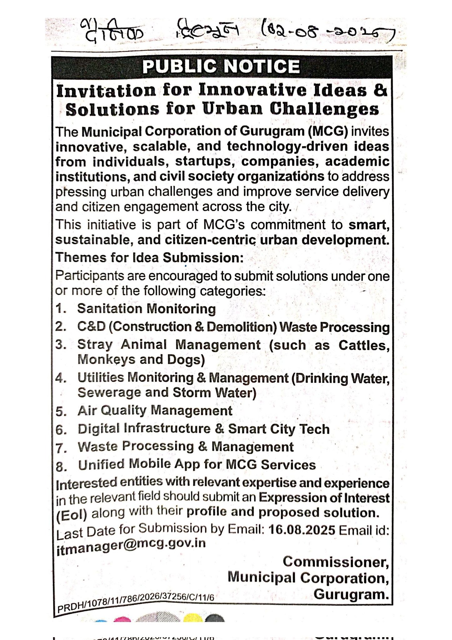 Contact id: itmanager@mcg.gov.in